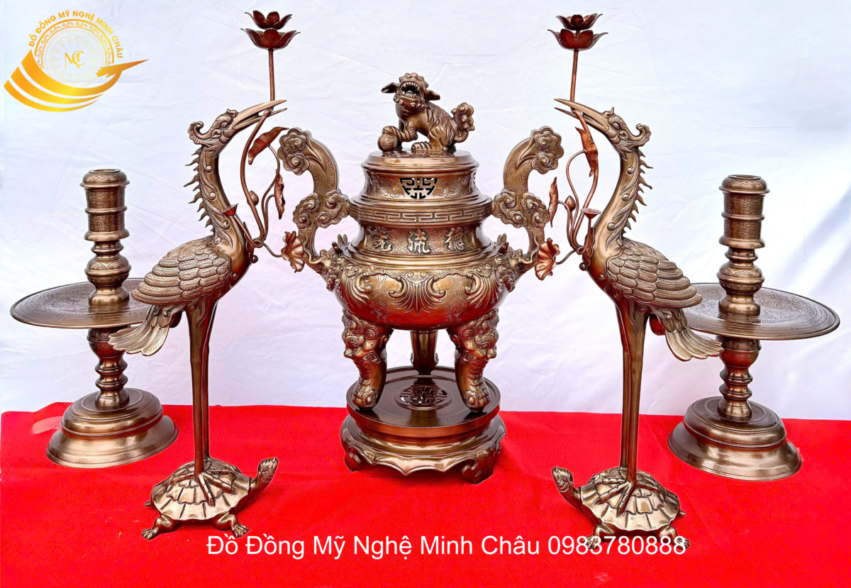 ✅ Vị trí đặt hạc đồng trên bàn thờ: Thông thường, hạc thờ được đặt hai bên lư hương hoặc đỉnh đồng, tạo nên bố cục hài hòa, tôn lên vẻ trang trọng của không gian thờ cúng.