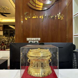 Trống Đồng Mạ Vàng được chế tác từ đồng nguyên chất, phủ lớp vàng rực rỡ, nổi bật với những họa tiết truyền thống tinh xảo. Sản phẩm không chỉ là một món đồ trang trí sang trọng mà còn mang ý nghĩa phong thủy tích cực, thu hút tài lộc và thịnh vượng cho gia chủ.