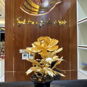 Chậu hoa mẫu đơn bằng đồng mạ vàng là một tuyệt phẩm nghệ thuật thủ công, tượng trưng cho sự giàu sang, phú quý và vẻ đẹp tinh tế. Được chế tác từ đồng nguyên chất, phủ vàng cao cấp, mỗi cánh hoa và chiếc lá đều được khắc họa tinh xảo, toát lên sự sang trọng và đẳng cấp.