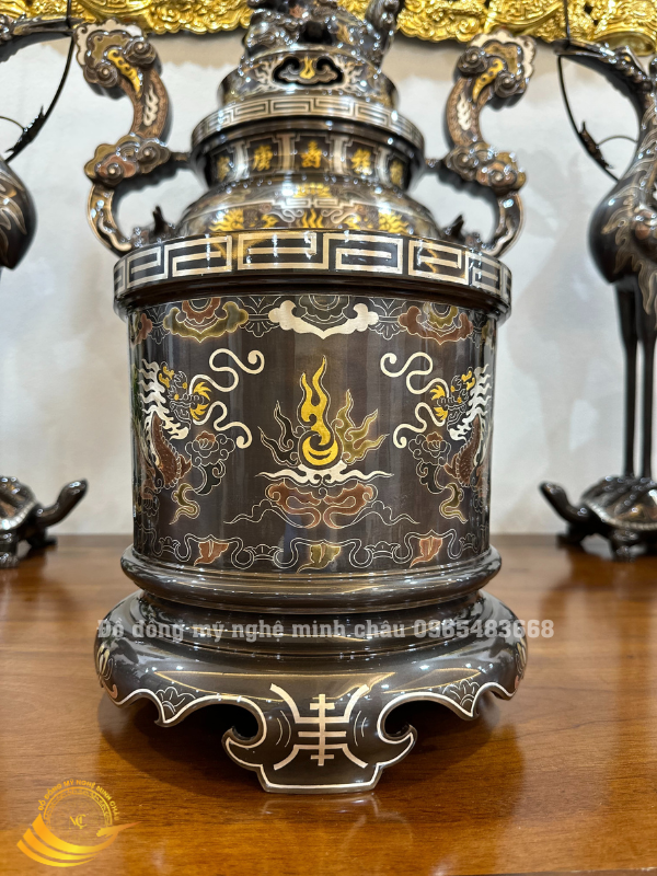 Bát hương đồng khảm ngũ sắc không chỉ có tính thẩm mỹ cao mà còn là vật phẩm thể hiện sự giàu có và lòng thành kính của gia chủ. Đây là lựa chọn hoàn hảo cho những gia đình, đình chùa, đền miếu muốn sở hữu một sản phẩm vừa có giá trị nghệ thuật, vừa có ý nghĩa tâm linh sâu sắc.