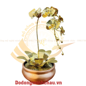 Hoa lan tượng trưng cho sự cao quý, thịnh vượng và cân bằng phong thủy. Khi kết hợp với đồng và vàng 24k, chậu hoa lan không chỉ tôn lên vẻ đẹp tinh tế mà còn màng lại nguồn năng lượng tích cực.
