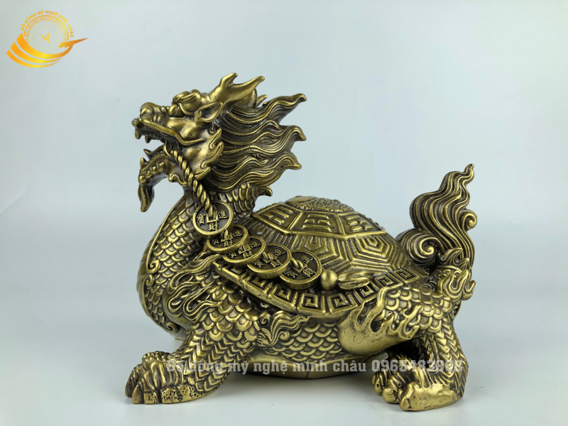 - Chất liệu cao cấp: Được làm bằng đồng nguyên chất, tượng Long quy bát quái không chỉ bền đẹp với thời gian mà còn tỏa sáng với vẻ đẹp sang trọng và tinh tế.