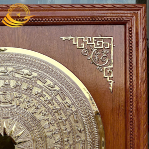 Mặt Trống Đồng 70cm Mạ Vàng Khung 1mx1m Gỗ Gõ Đỏ