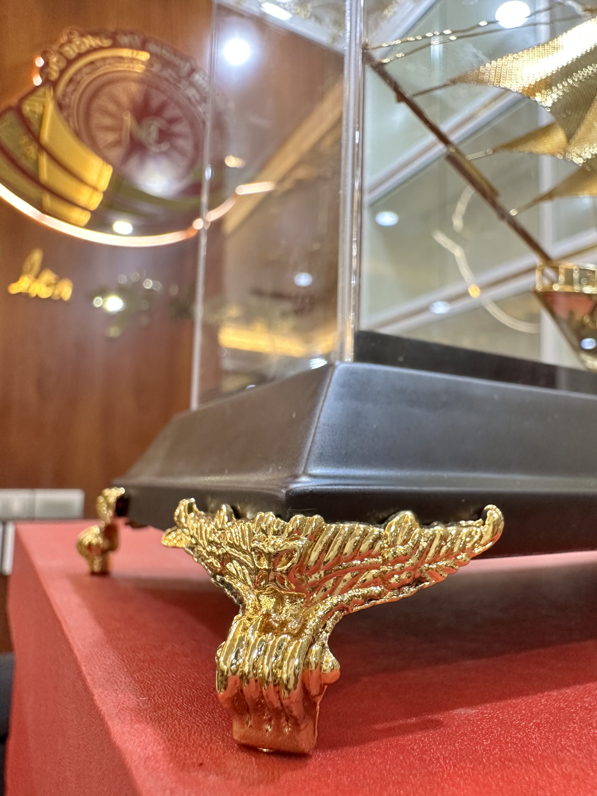 Mô hình thuyền buồm mạ vàng 24k không chỉ đẹp bởi sự sang trọng, mà còn bởi hồn thiêng của những câu chuyện vượt sóng. Từng chi tiết trên thuyền đều được chăm chút tỉ mỉ bởi bàn tay tài hoa của nghệ nhân, từ cánh buồm căng đầy sức sống đến thân thuyền vững chãi như đang sẵn sàng lao về phía trước.