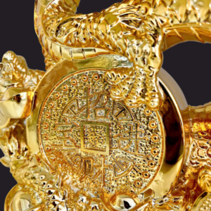 Tượng rồng cuốn tiền là sự kết hợp giữa hai biểu tượng mạnh mẽ nhất trong phong thủy: Rồng – đại diện cho quyền uy, và Tiền – đại diện cho tài lộc. Khi Rồng ôm trọn lấy đồng tiền vàng, ý nghĩa của sự bảo hộ, giữ gìn và nhân rộng tài sản càng được củng cố.